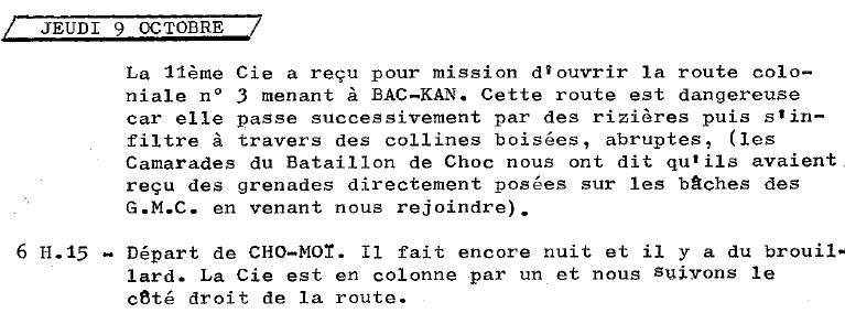 Le Capitaine GUIARD rend compte au Lieutenant-Colonel SAUVAGNAC de la situation et annonce le retour de la colonne à Cho Moï. Mais les transmissions sont défectueuses et le message ne pourra être passé que vers 14h00. Dans la soirée, le Colonel annonce l’arrivée d’une compagnie du bataillon de Choc (Compagnie PAINTAULT) qui restera à Cho Moï.
