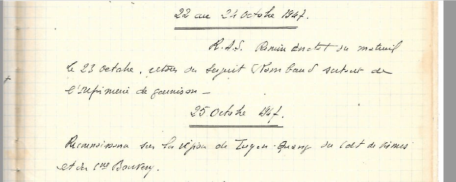 Remise en état du matériel. Le 23 Octobre, retour du Sergent RAMBAUD sortant de l’infirmerie de garnison.