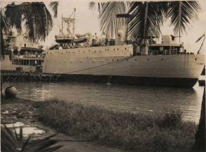 Tout le monde couche sur le pont. Le voyage est particulièrement inconfortable. Heureusement que nos hommes améliorent leur ordinaire grâce à quelques caisses de rations « Pacific » abandonnées pour ainsi dire par des tirailleurs généreux ou oublieux qui sont embarqués en même temps que nous.