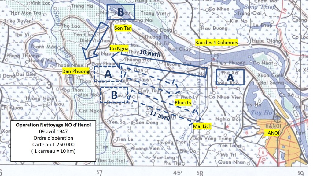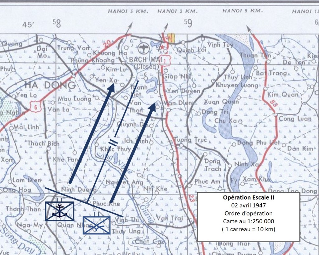 - 11 avril : appuyer le début de l’action vers Hanoï de l’infanterie et regagner Hanoï par Mai Linh