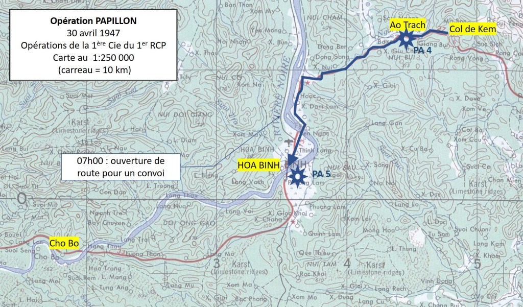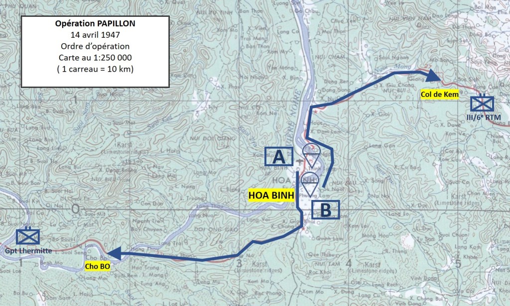 Mission du Bataillon : Sauter à Hoa Binh, tenir Hoa Binh, joindre la colonne venue d’Hanoï au Col de Kem, joindre la colonne Lhermitte. Tenir la fraction de la RC6 entre les deux points de jonction.