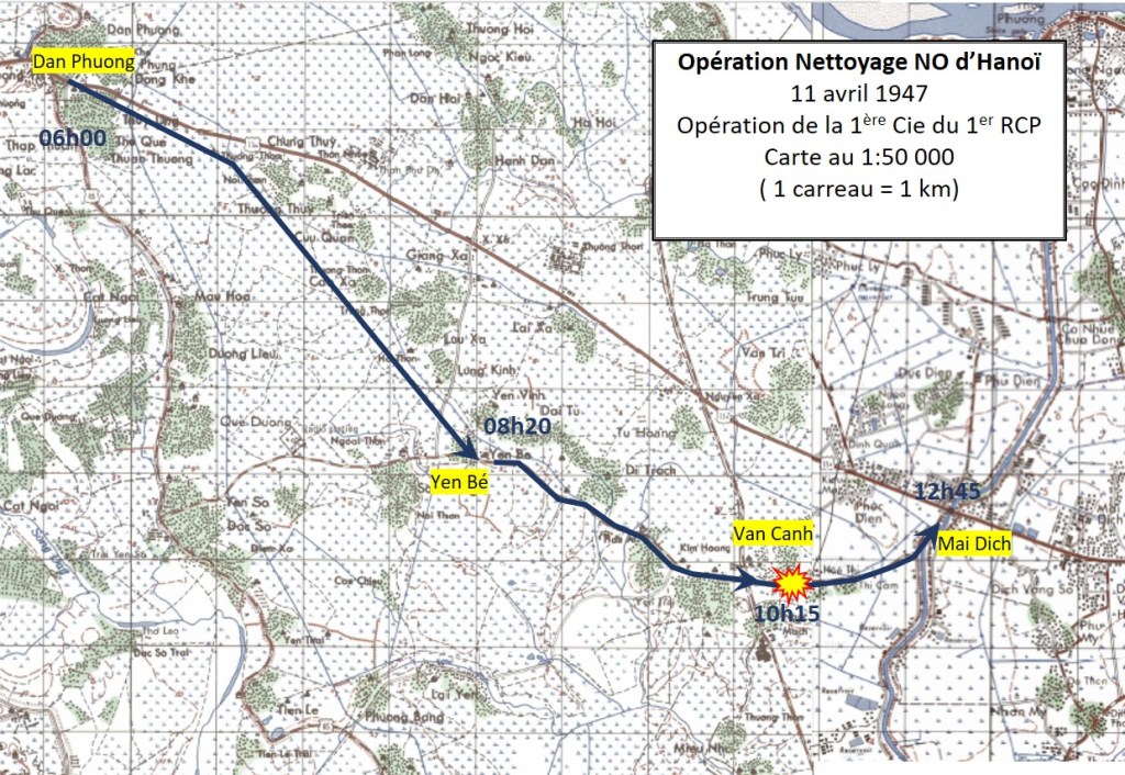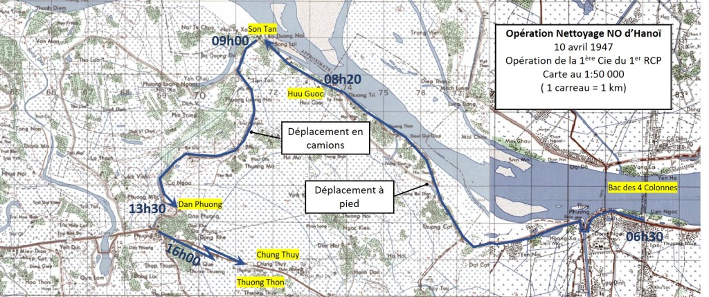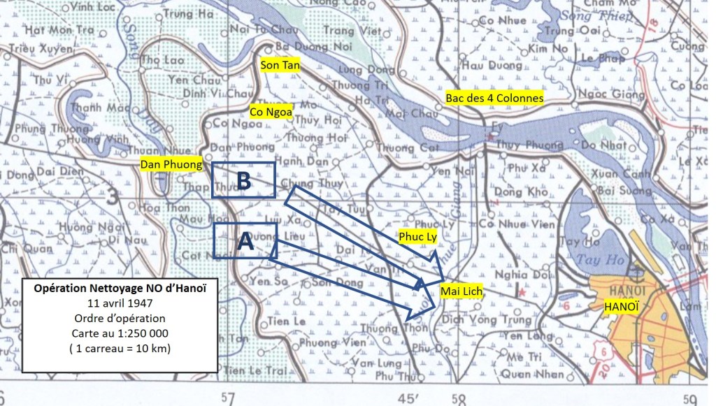 - 11 avril : en liaison avec le détachement A, nettoyer sur l’axe Dan Phuong- Mai Lich