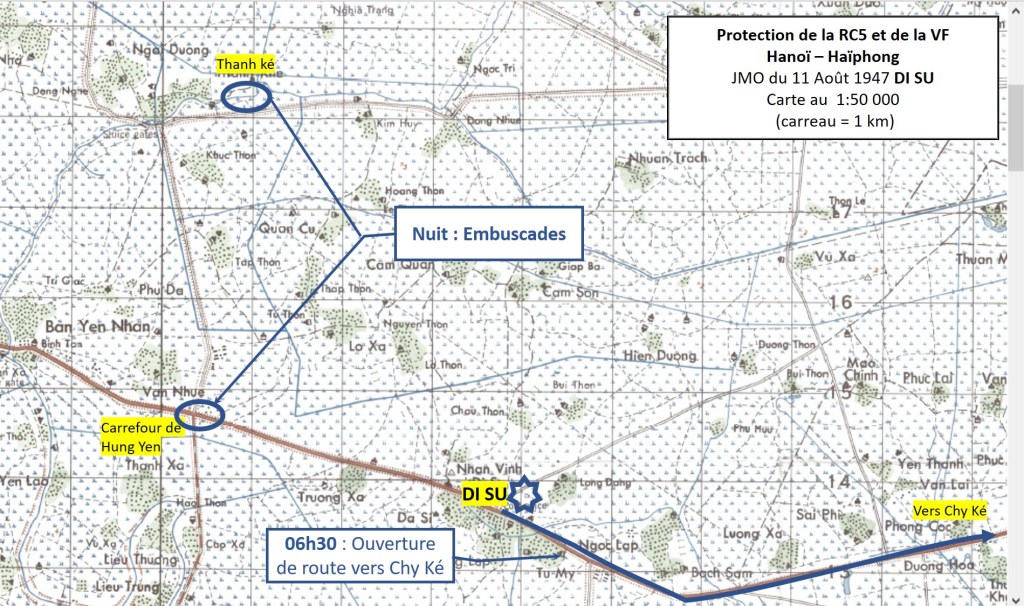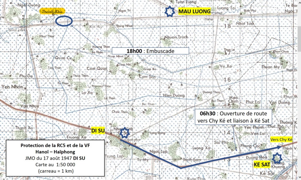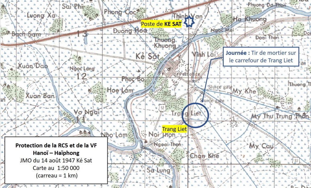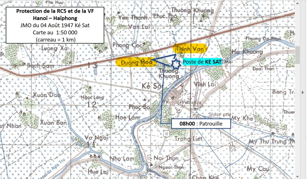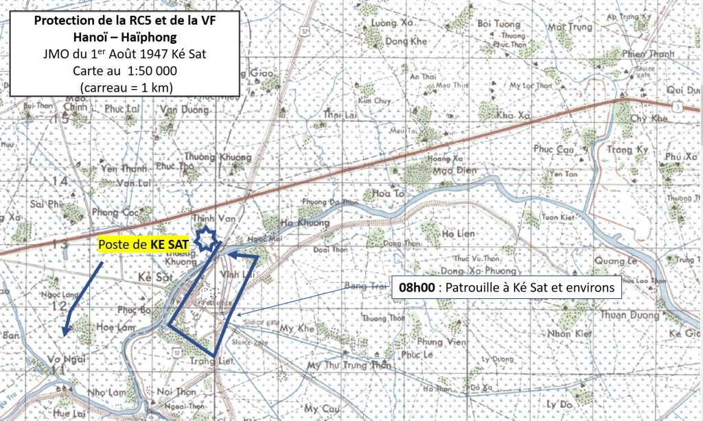 - Embuscade sur la digue au Sud-Est de Ké Sat avec une deuxième embuscade montée au carrefour de Tang Liet et une troisième au Nord Est de Ké Sat entre le carrefour et le poste : RAS.