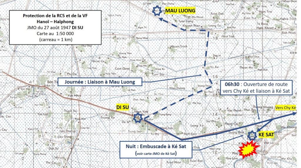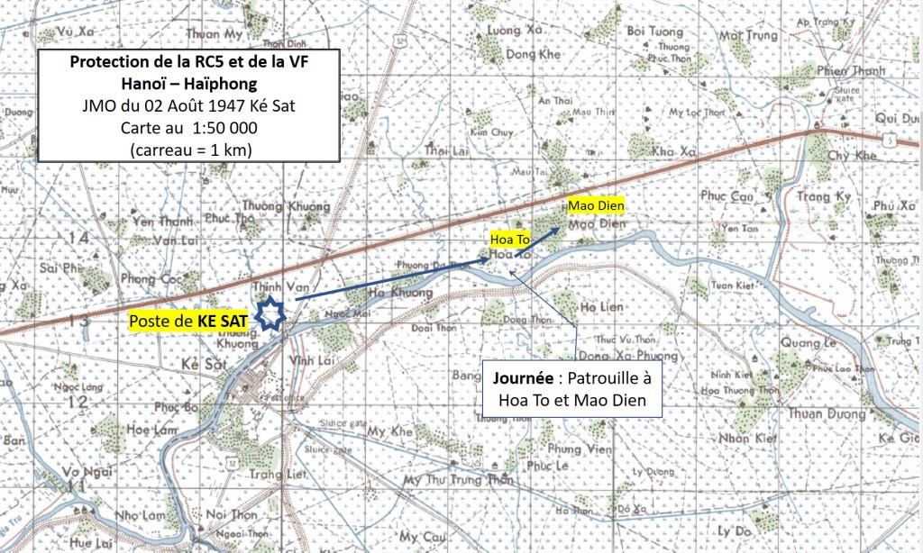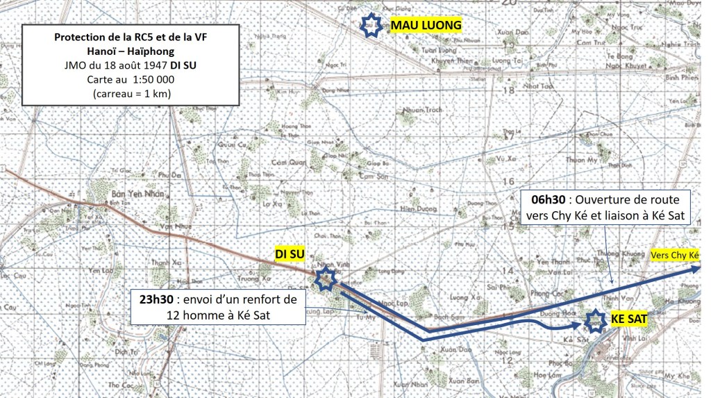 - 23h30 : Départ d’un détachement de 12 hommes vers Ké Sat pour parer à une éventuelle action du Viet-Minh.