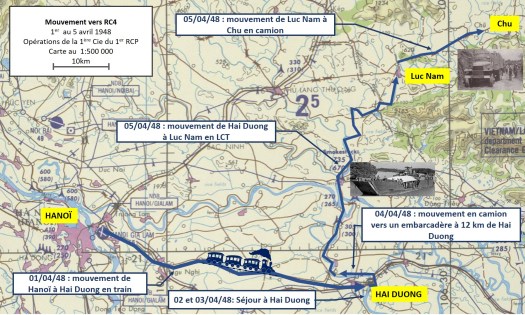 Trajet Haïduong à Luc Nam en LCT, puis Luc Nam à Chu en camion.