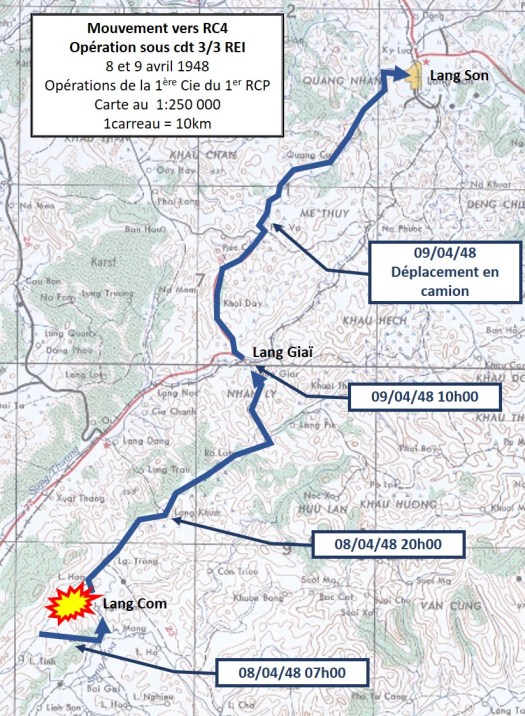 07h00 : Départ avec le 3/3ème REI vers Lang Giaï. Nous avons un accrochage près de Lang Con. Un légionnaire est blessé.