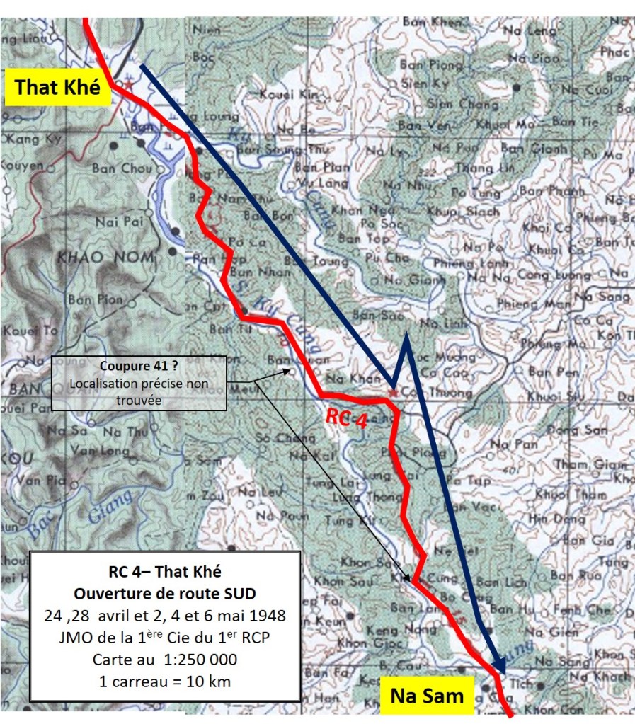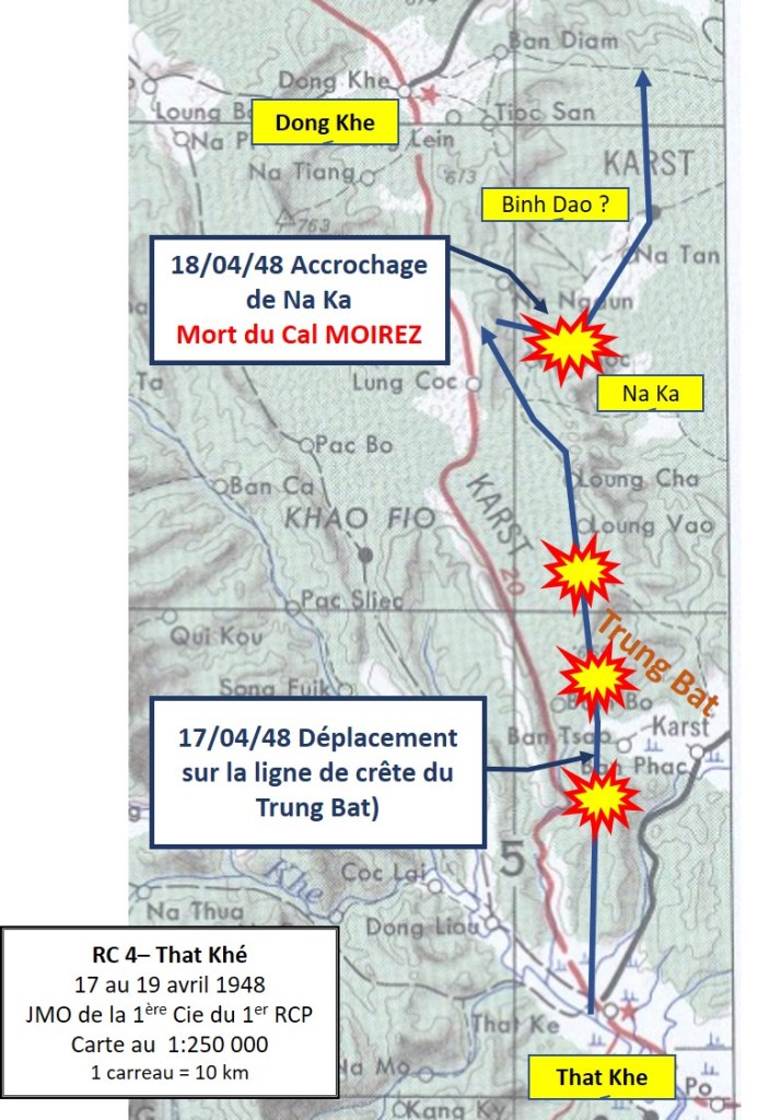 Ramenant le Sergent Sérignac et le corps du Caporal Moirez, les deux compagnies rentrent ensemble à That Khé. Les 2 compagnies accrochent à nouveau violemment à Na Ka et sur les crêtes du Trung Bat.