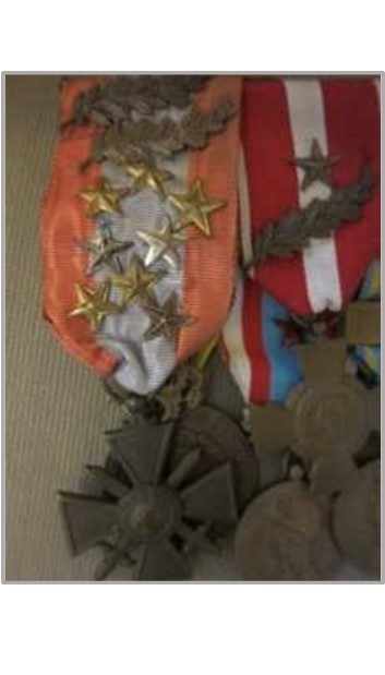 - Croix de Guerre des T.O.E, avec 1 étoile d’argent et 1 étoile de bronze ;